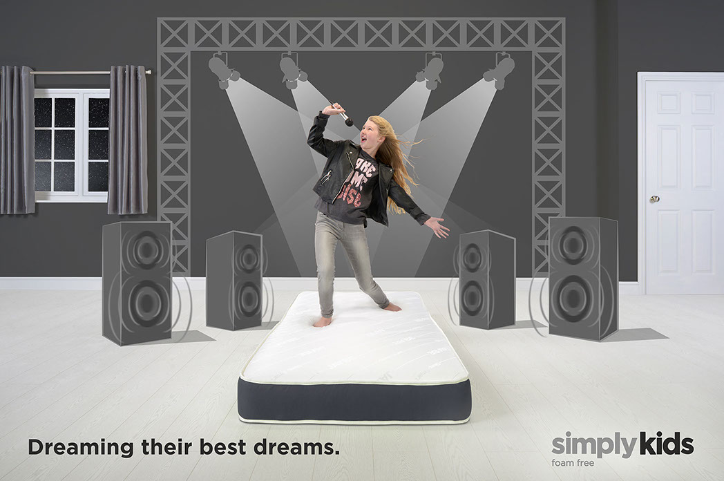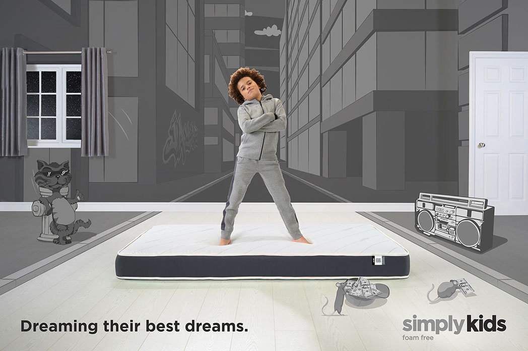 Create a series of images which communicate the properties and benefits of the Simply Kids mattress range in a fun and engaging way for both parents and children alike.