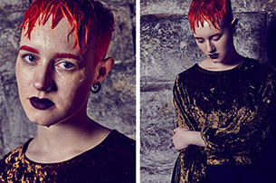 As a contrast to the bold colour statements of the hair styles we opted to shoot in the cellar of the Blackheart premises, against the lime stone foundations of Leeds Bridge.