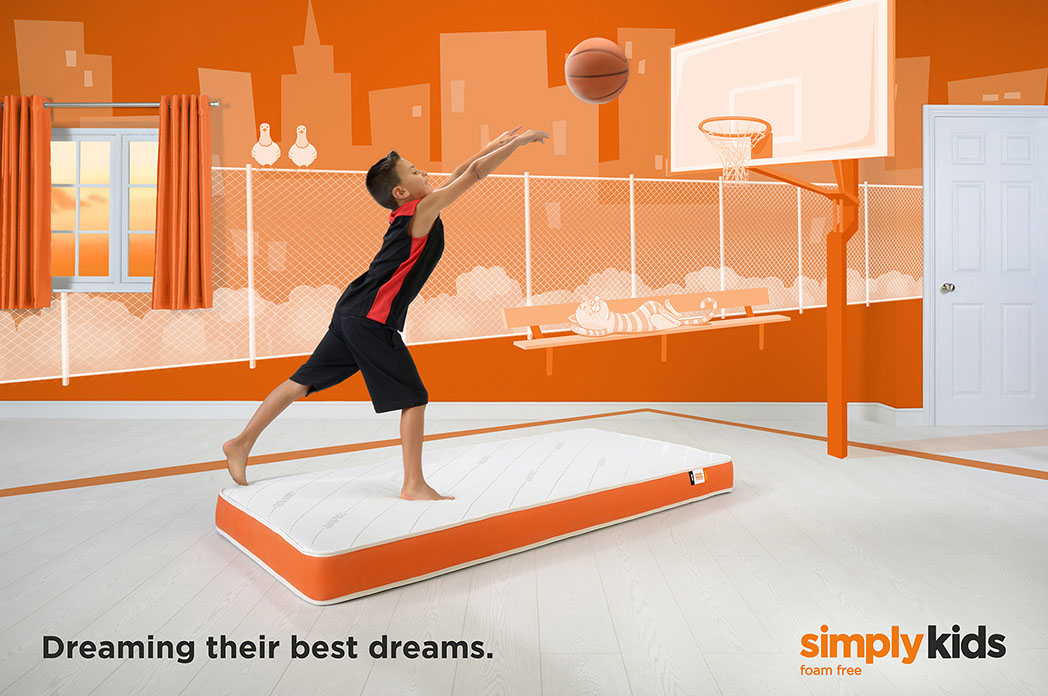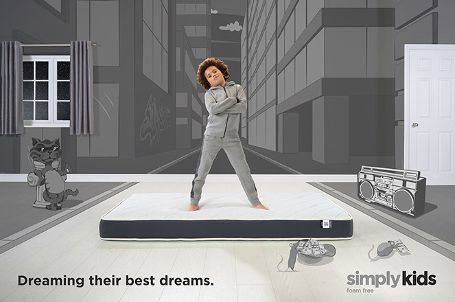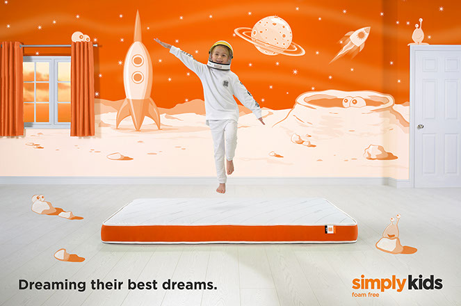 Create a series of images which communicate the properties and benefits of the Simply Kids mattress range in a fun and engaging way for both parents and children alike.